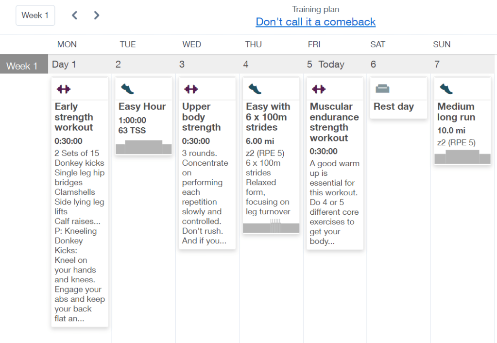 This plan is designed for anyone who has previous training experience and they have just come off a period away from running either due to injury or a deliberate rest in offseason etc. There is a focus on building volume and intensity throughout the 12 weeks with a greater emphasise on strength at the beginning of the plan. It mainly uses time and RPE as measurement metrics.